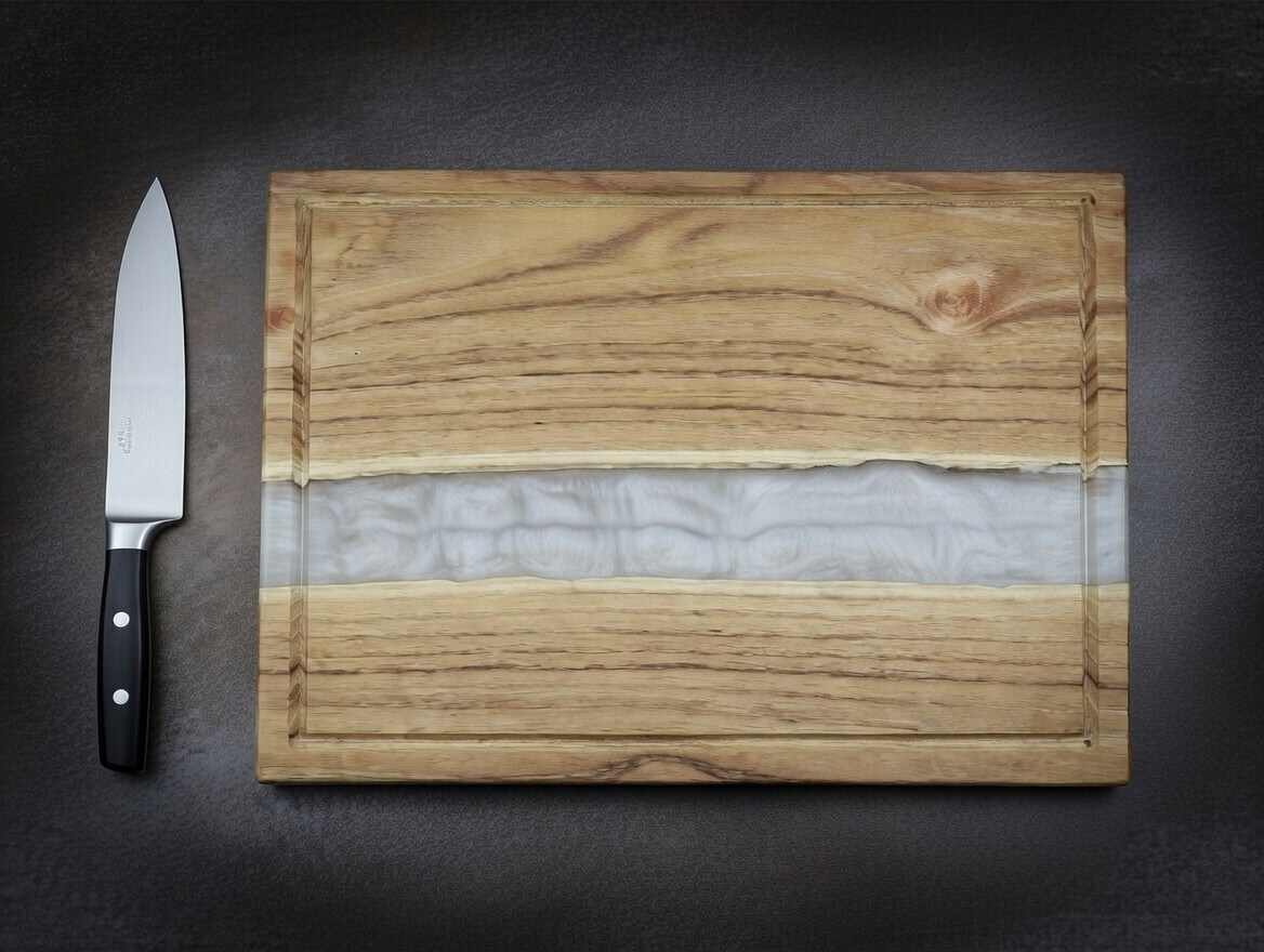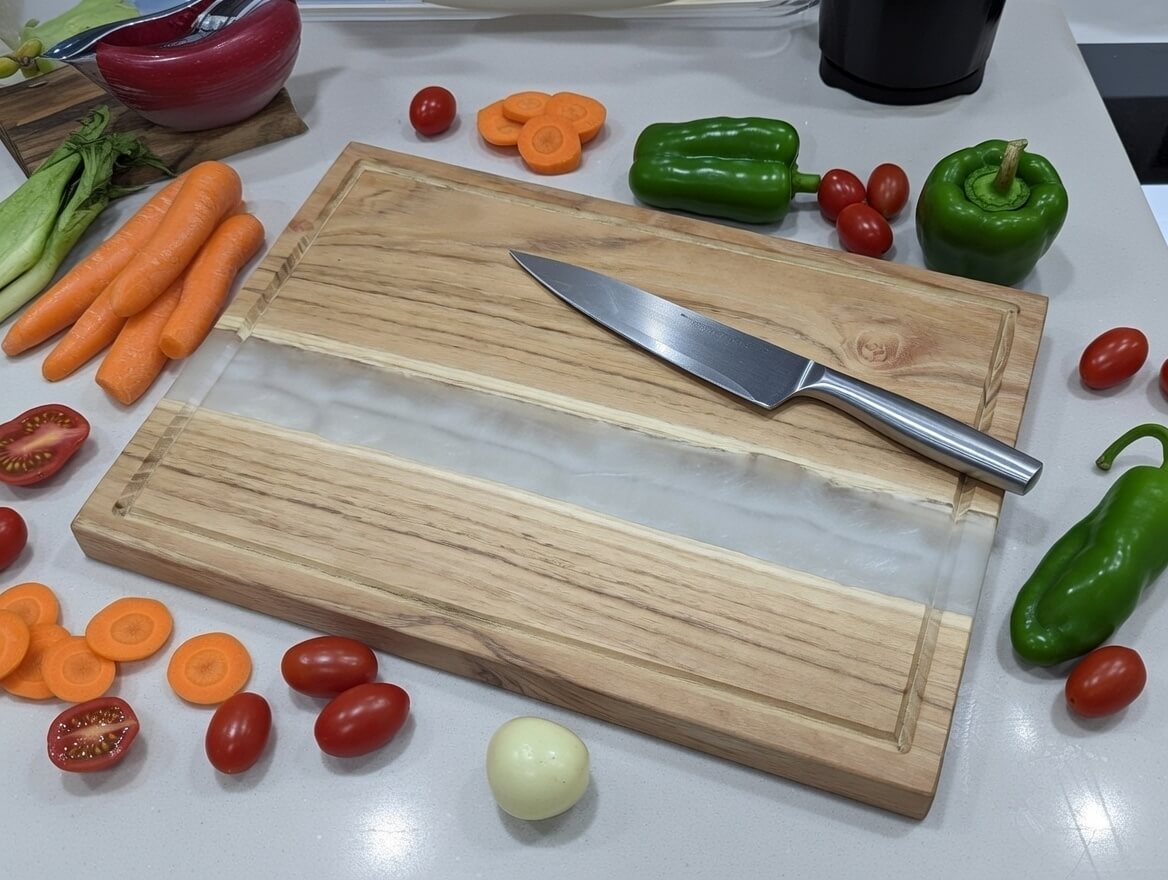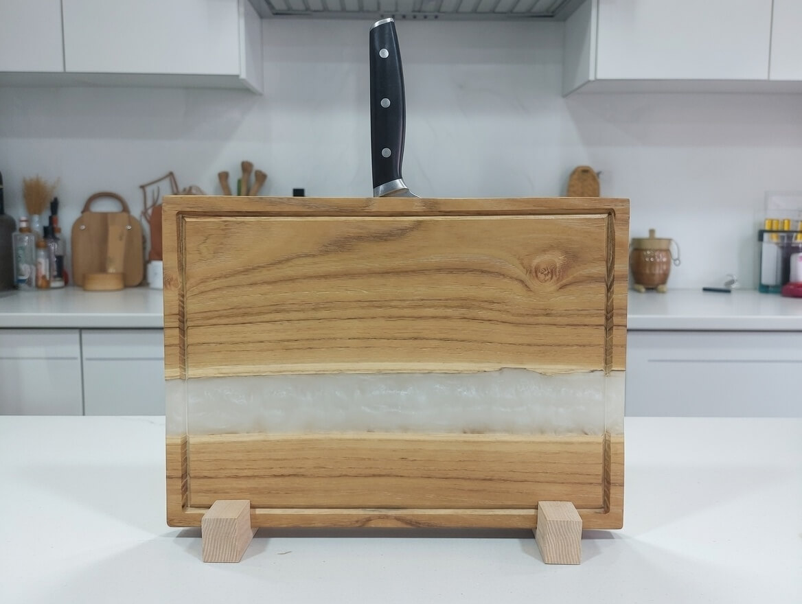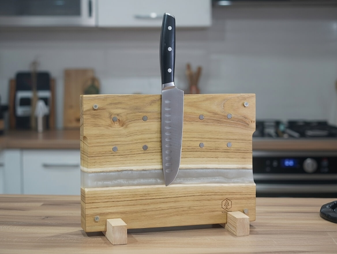 Kézzel készült epoxy-fa vágódeszka mágneses késtartóval – EasyWorld