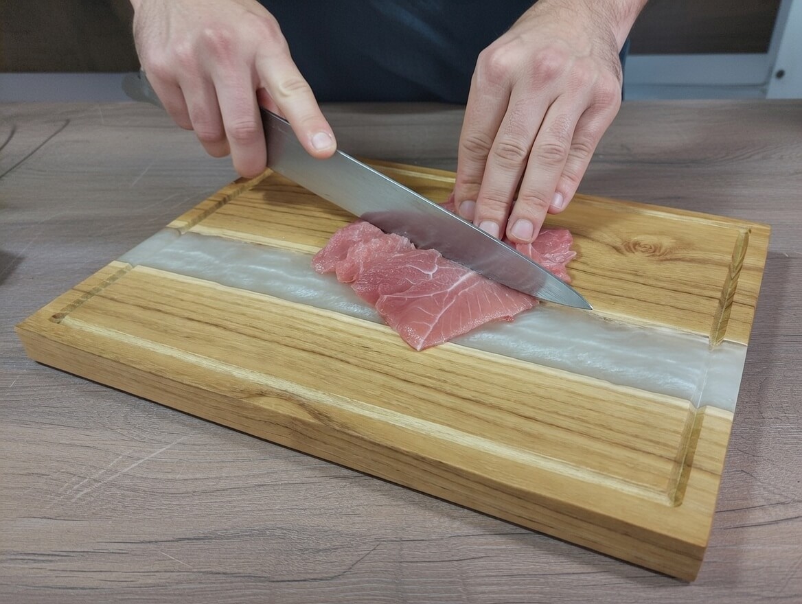 - A fa része ideális vágásra, míg az epoxy felület elsősorban tálalásra alkalmas. Mi történik, ha a gyanta felületen vágok? Nem tilos – és nem is tragédia! Lesz rajta néhány karcolás, ami élelmiszerbarát gyantánál nem okoz semilyen problémát étellel való érintkezés során. Természetes folyamat, mivel vágódeszka, és agyártó kifjezetten erre készítette.