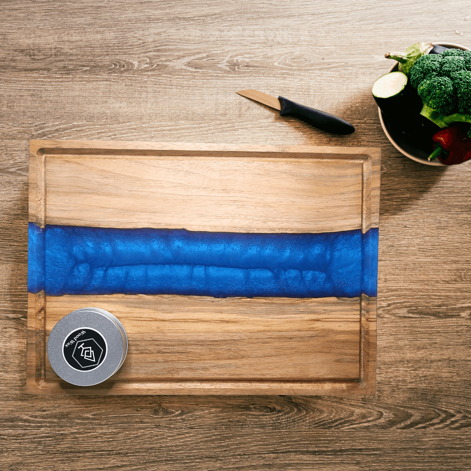- Anyag: diófa + élelmiszerbarát epoxy gyanta